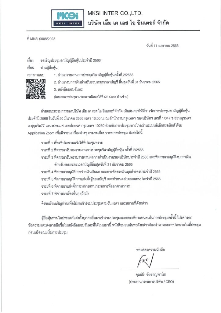 ขอเชิญประชุมสามัญผู้ถือหุ้นประจำปี 2567